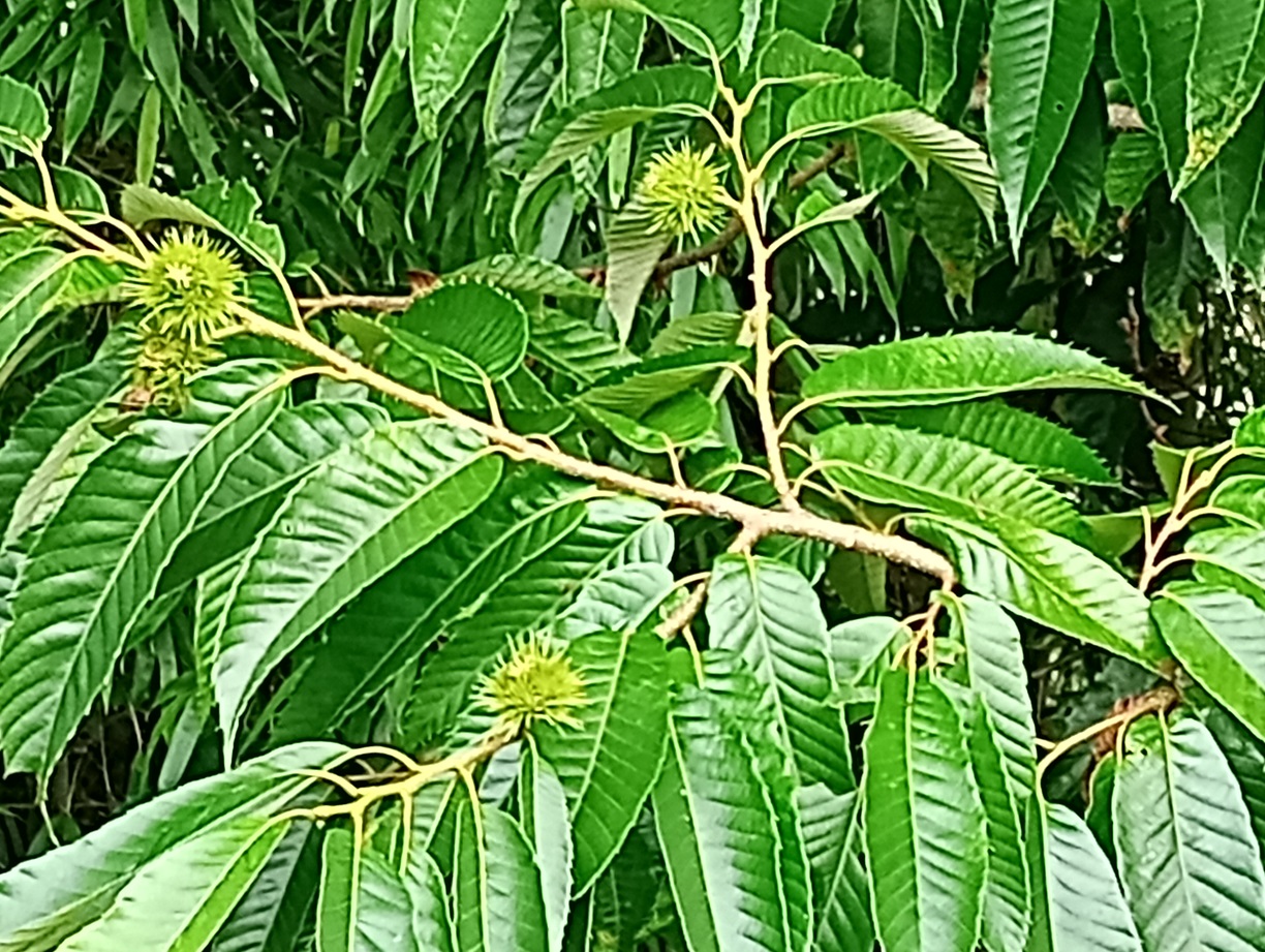 イガの成長過程についてお話しすると、春に栗の木が花を咲かせ、受粉後にイガが形成されます。最初は柔らかいイガが、夏にかけて徐々に大きくなり、トゲトゲした形になります。秋に向けてさらに固くなり、中の栗も大きく育っていきます。